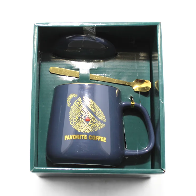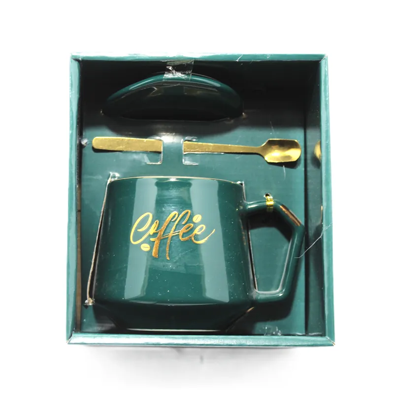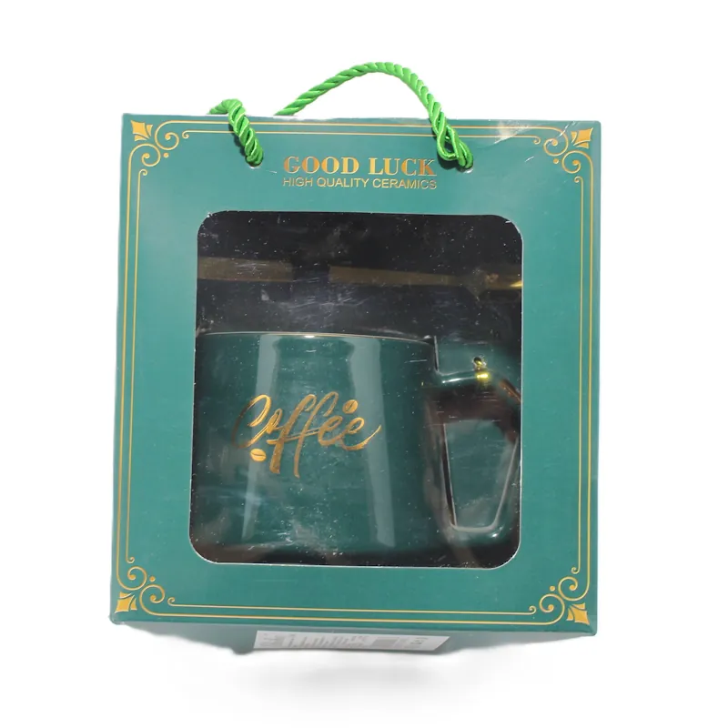 Подаръчен комплект, състоящ се от елегантна порцеланова чаша и метална лъжица, идеален за любителите на кафето и стилните аксесоари. Чашата е с изискан дизайн в тъмнозелен цвят и златист надпис “Coffee”, което ѝ придава луксозно излъчване.