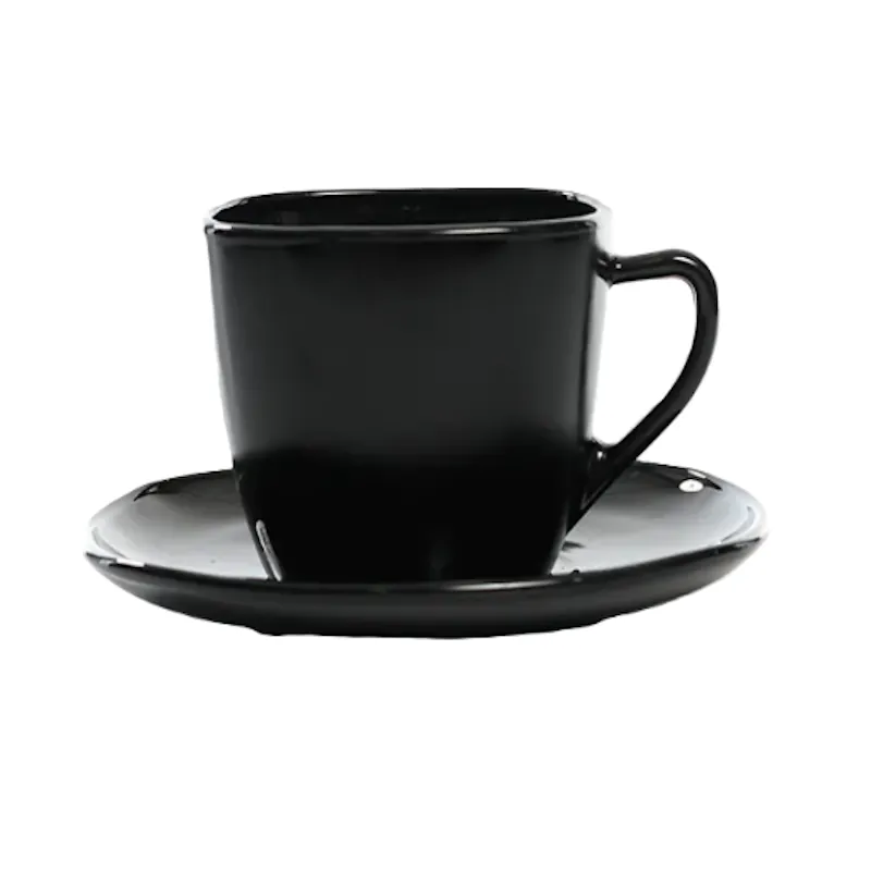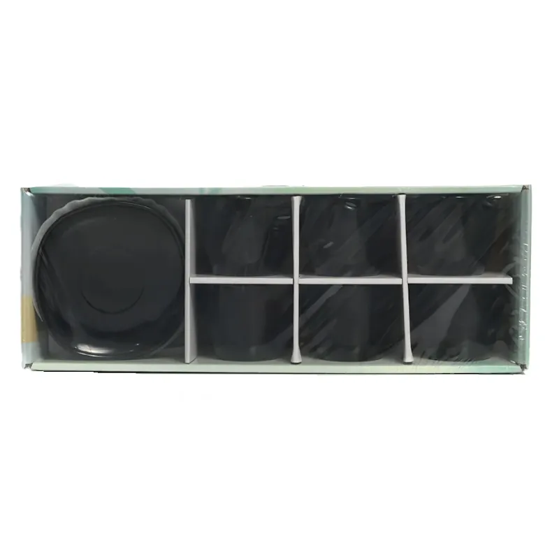 Стилен и модерен комплект от 6 черни чаши за кафе с подложки, идеален за тези, които ценят изчистения дизайн и елегантните линии. Черният цвят придава луксозно излъчване и прави комплекта подходящ както за домашна употреба, така и за офиса.