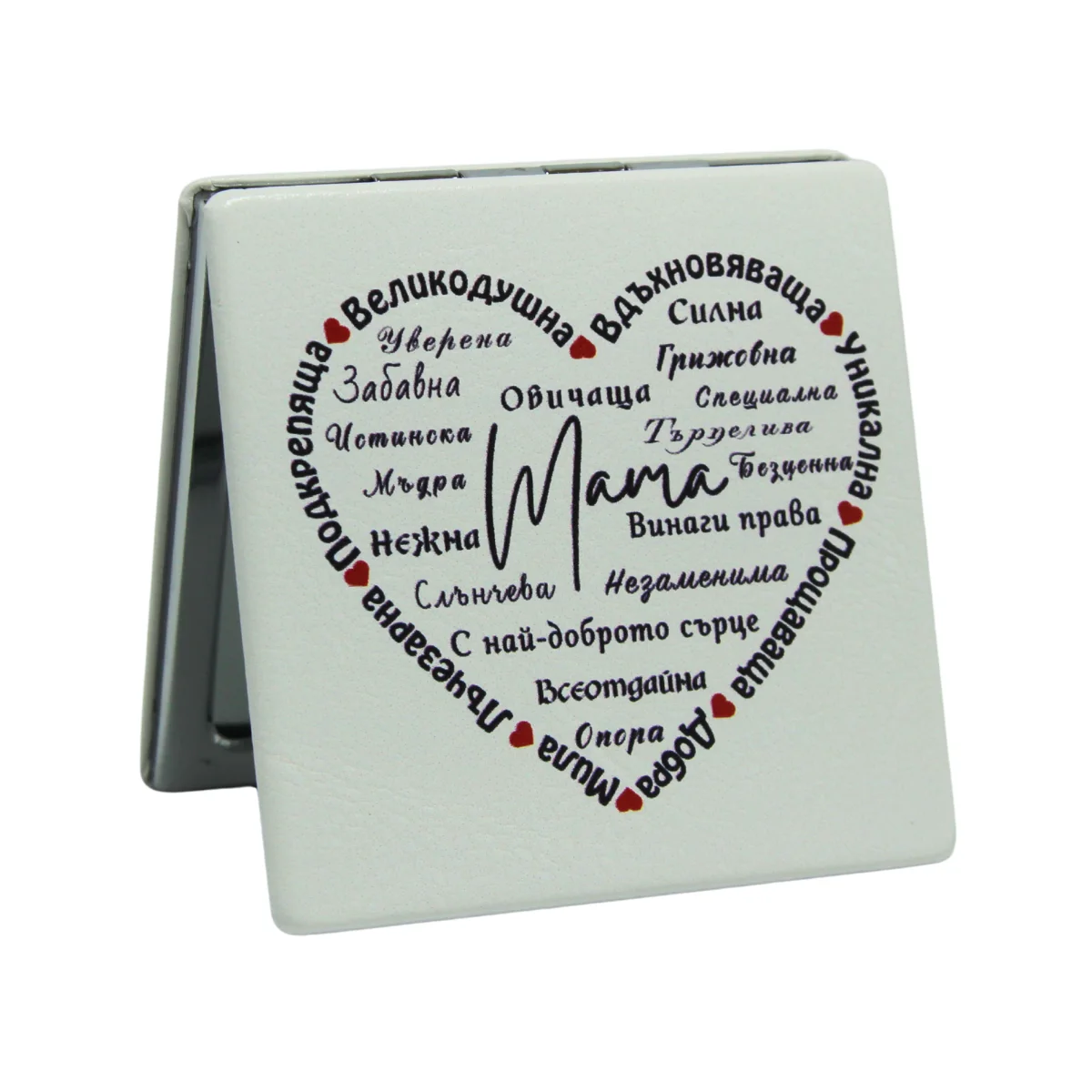 Това компактно дамско огледало с пожелание е перфектната комбинация между практичен аксесоар и мил подарък. Подходящо за всяка жена, която обича стилни и полезни вещи. Изберете модел с послание и подарете усмивка и внимание на любим човек.