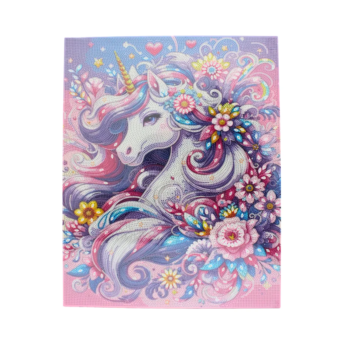 Диамантеният гоблен „Вълшебен еднорог“ изобразява изящен еднорог, обграден от богати цветни орнаменти, цветя и нежни пастелни нюанси. Композицията създава усещане за приказност, красота и въображение, което го прави особено подходящ за деца и любители на фантазията.
