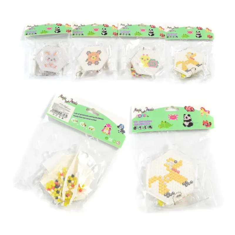 Този творчески комплект с цветни мъниста носи истинско забавление – детето създава сладки животинки, редейки мънистата върху шаблона, а после вижда как картинката оживява пред очите му. Чудесен начин за развитие на фината моторика, въображението и търпението, докато резултатът е красив и гордо ръчно изработен.
