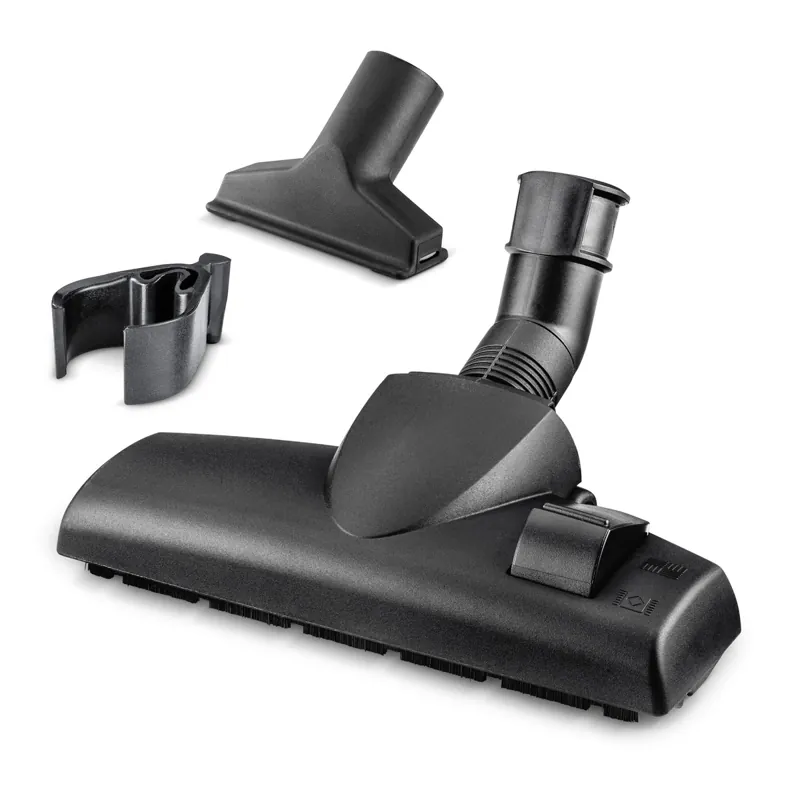 С превключващия се накрайник за сухо почистване и накрайника за тапицерии домашният комплект предлага идеалните принадлежности за много обичайни домакински почистващи дейности. Превключващият се чрез педал накрайник за под е подходящ както за текстилни подови настилки, така и за твърди повърхности. Практичният накрайник за тапицерия с ивици четки позволява внимателното изсмукване на мека мебел и тапицерии.