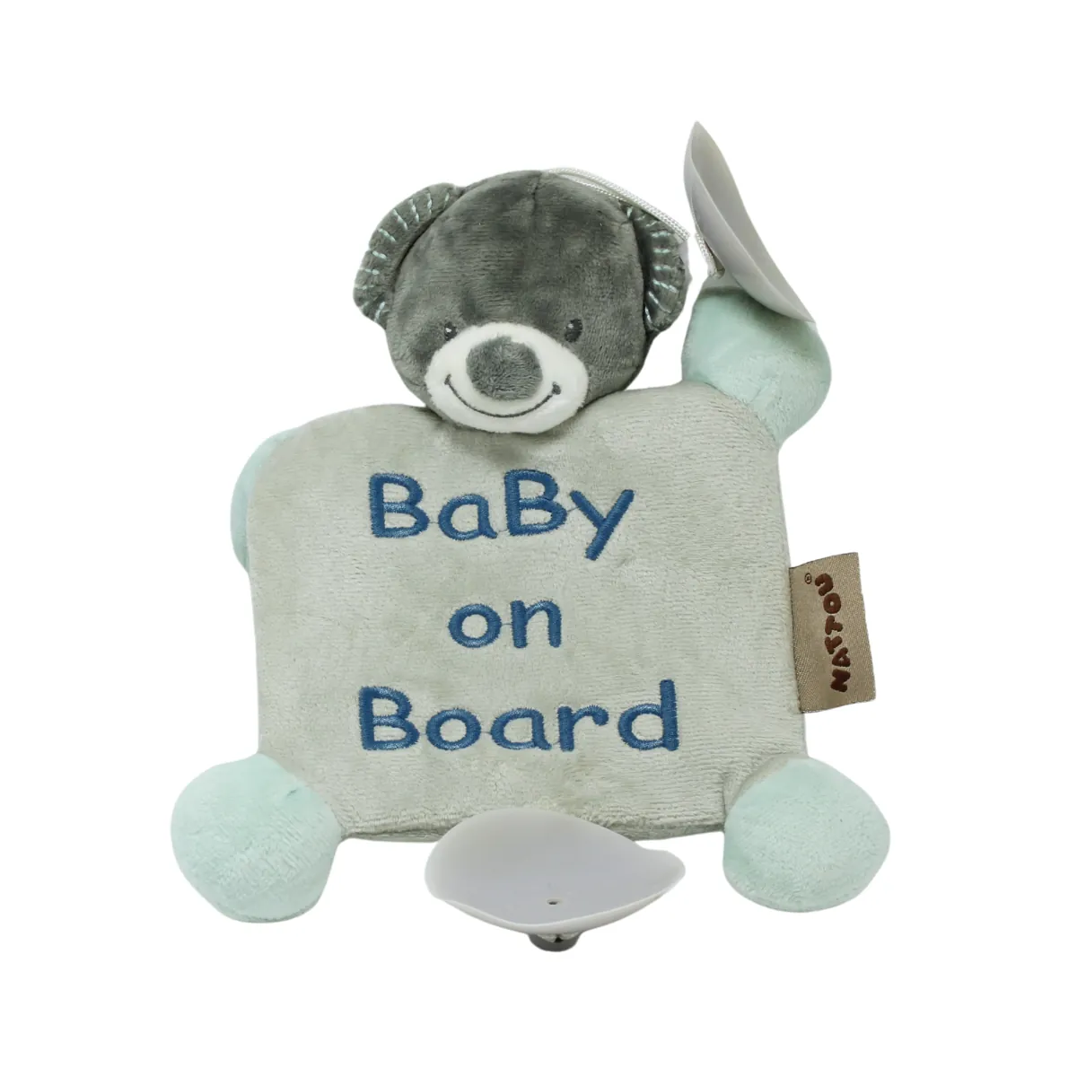 Симпатична и практична плюшена играчка, предназначена за поставяне в автомобил, която ясно сигнализира, че в колата има бебе. Меката материя и милото мече я правят едновременно декоративен и полезен аксесоар.
