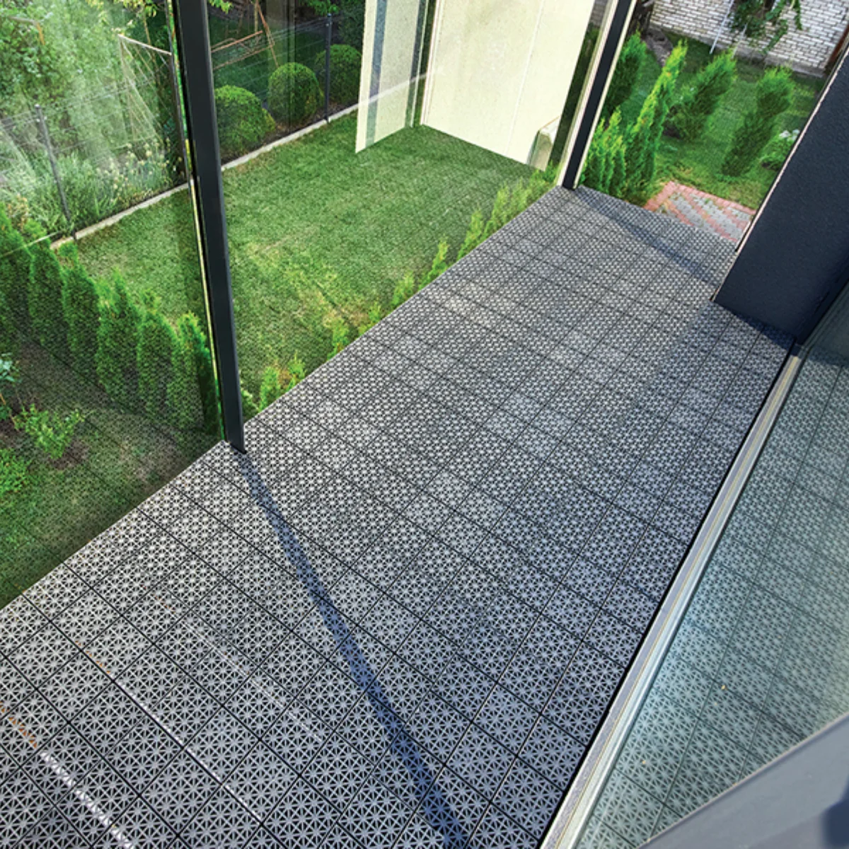 Със своя размер 298 x 298 мм и височина 12 мм, тези плочки създават стабилна и равномерна повърхност. Изработени са от висококачествен полипропилен, който е издръжлив, водоустойчив и устойчив на атмосферни влияния. Сивият цвят придава съвременен и неутрален вид, който се съчетава лесно с различни стилове на обзавеждане.