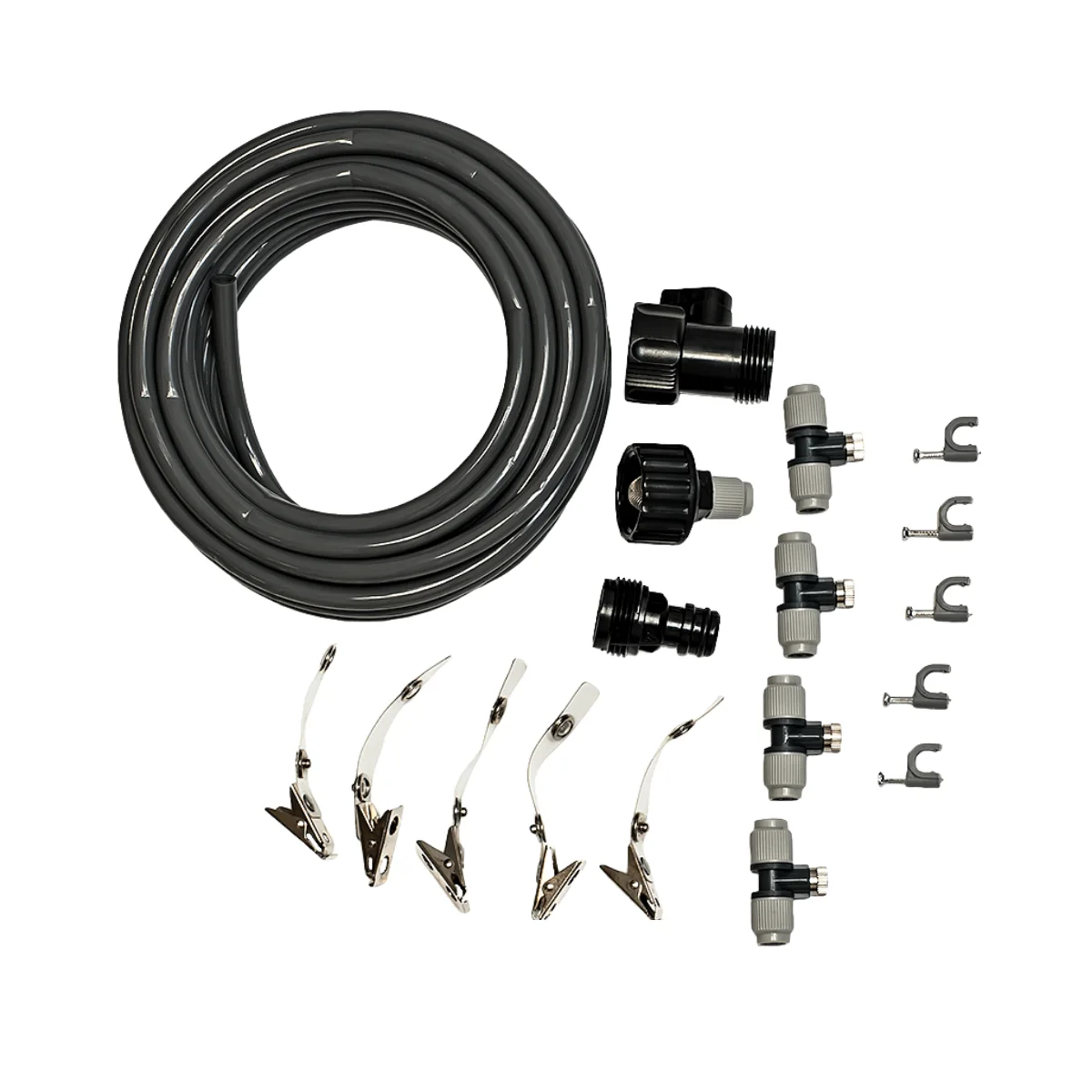 Висящи скоби – 5 броя: За лесно окачване и позициониране на маркуча и дюзите.