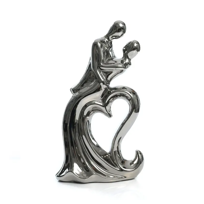 Изискана декоративна статуетка, изобразяваща влюбена двойка, вплетена в нежна сърдечна форма – символ на вечна любов, свързаност и хармония. Гланцовото метално покритие и изчистените линии придават модерен и елегантен вид, който се вписва перфектно както в класически, така и в съвременни интериори. Тази статуетка е идеален подарък за сватба, годишнина, Свети Валентин или като романтичен жест към любим човек. Перфектен акцент за хол, спалня, офис или декоративна витрина.