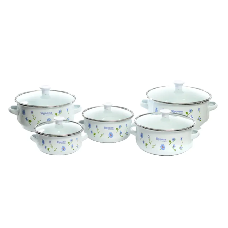 Комплект от 5 емайлирани тенджери със стъклени капаци, подходящ за всяка кухня. Тенджерите са изработени от висококачествен материал с устойчиво емайлирано покритие, което осигурява равномерно загряване и лесно почистване. Всяка тенджера е снабдена с прозрачен стъклен капак с удобна дръжка, което позволява наблюдение на готвенето без загуба на топлина.