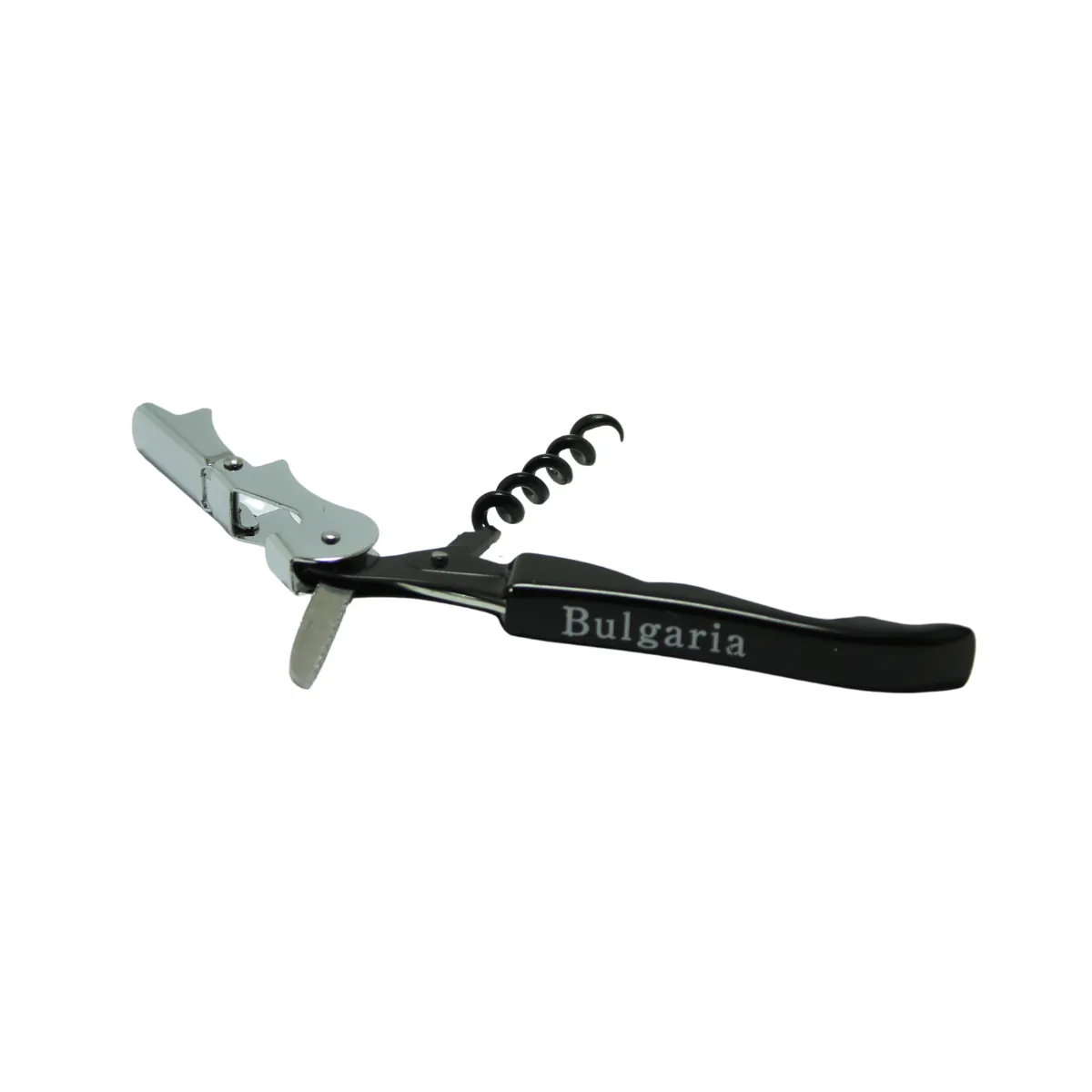 Тирбушон тип „папагал“ с надпис Bulgaria – практичен и стилен аксесоар за отваряне на винени бутилки. Изработен от метал и здрава дръжка за стабилен захват. Компактен, удобен за носене и подходящ както за домашна употреба, така и като сувенир или подарък. Осигурява лесно и безопасно отваряне благодарение на двойния лостов механизъм.